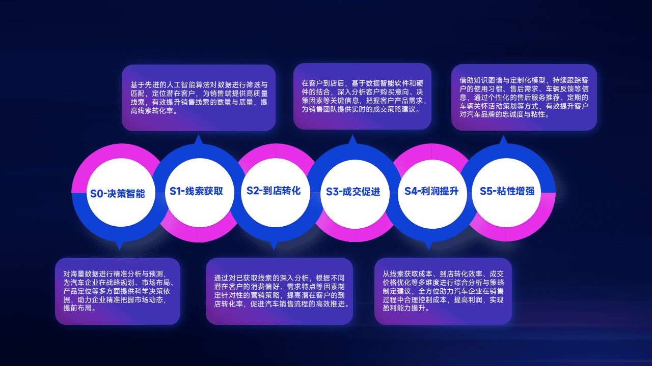 通过拓宽潜在客户来源、、、、优化线索分配并提高到店转化率,,,以增强销售效率。。。同时,,利用线索数据不断优化分析模型,,,有效提升转化率,,,,扩大营销影响力。。